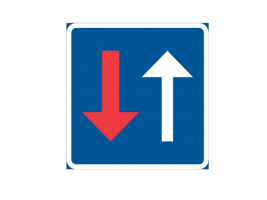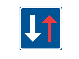 السهم الابيض يخصك وعلى حركة المرور المقابلة اعطاء اولوية المرور لك