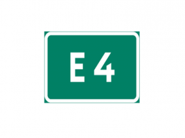 اللوحة توضح ان الطريق يؤدي الى طريق E4